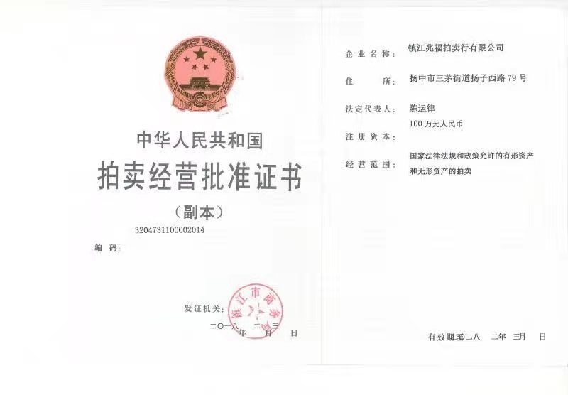 鎮江兆福拍賣行有限公司拍賣公告 我公司接受委托...